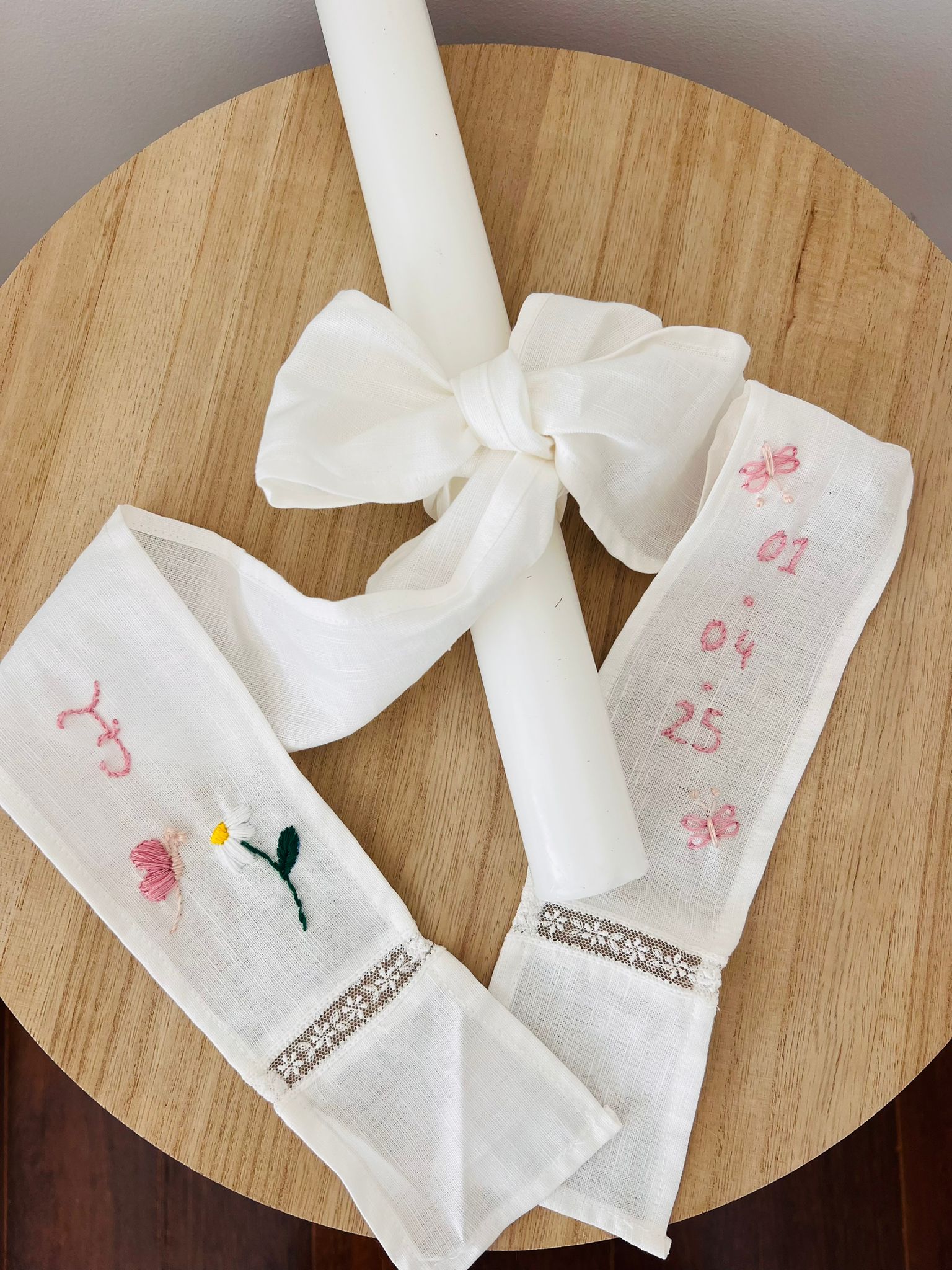 Ideal para acompanhar a vela de cerimónia, harmonizando com o mandrião ou fofo e reforçando a tradição com um toque de delicadeza e personalização.