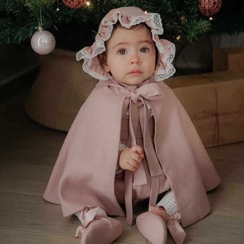 A charming accessory for ceremonies, our lace hooded cape is designed to perfectly match your chosen ensemble. It can be made in the same fabric as the dress or the same color as the sash, ensuring a cohesive and sophisticated look. The delicate lace applied around the hood will be selected according to the dress style, creating a unique and charming piece. Ideal for adding a special touch to the most important moments.