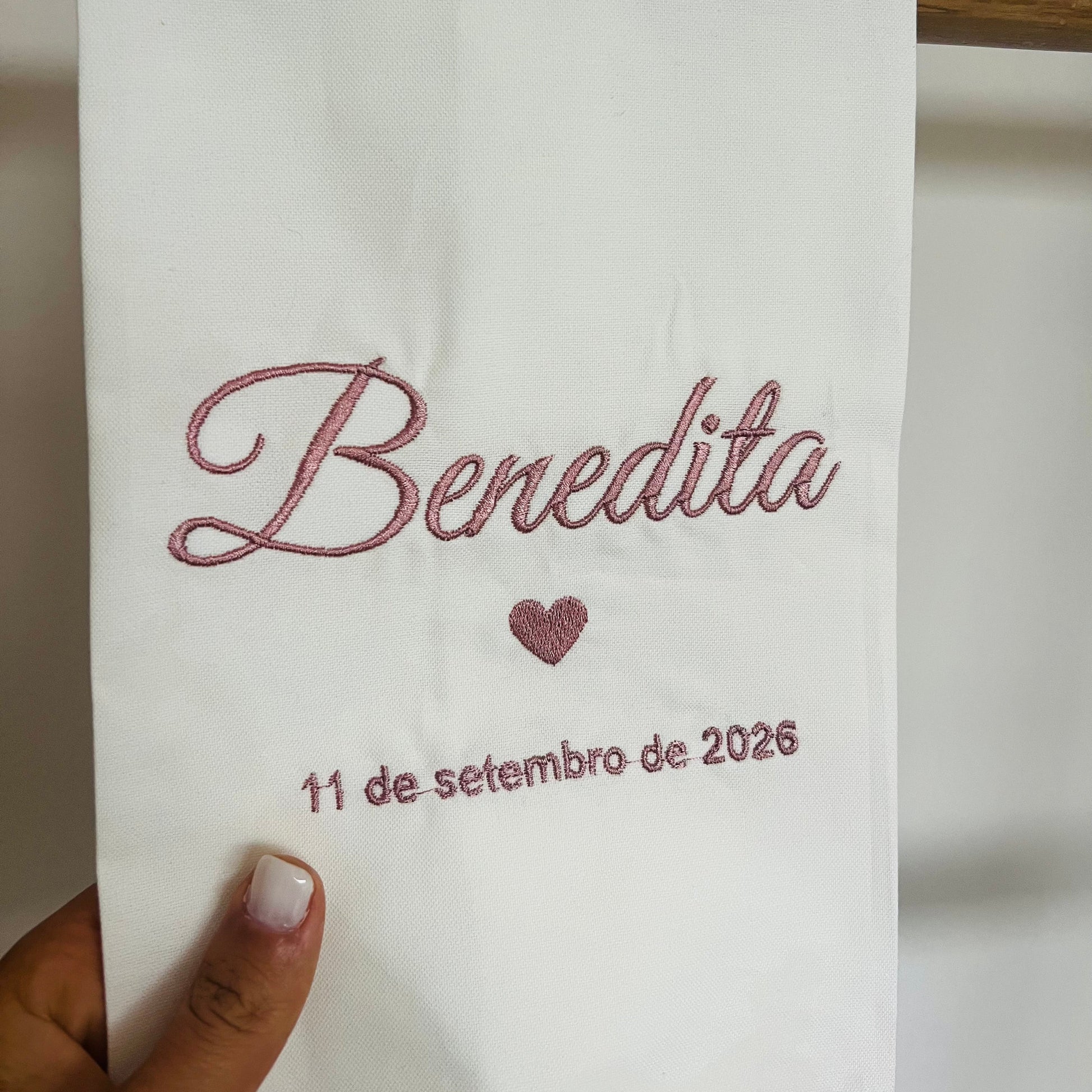 - A renda que a toalha leva a toda a volta será de acordo com o vestido da menina ou o conjunto de menino