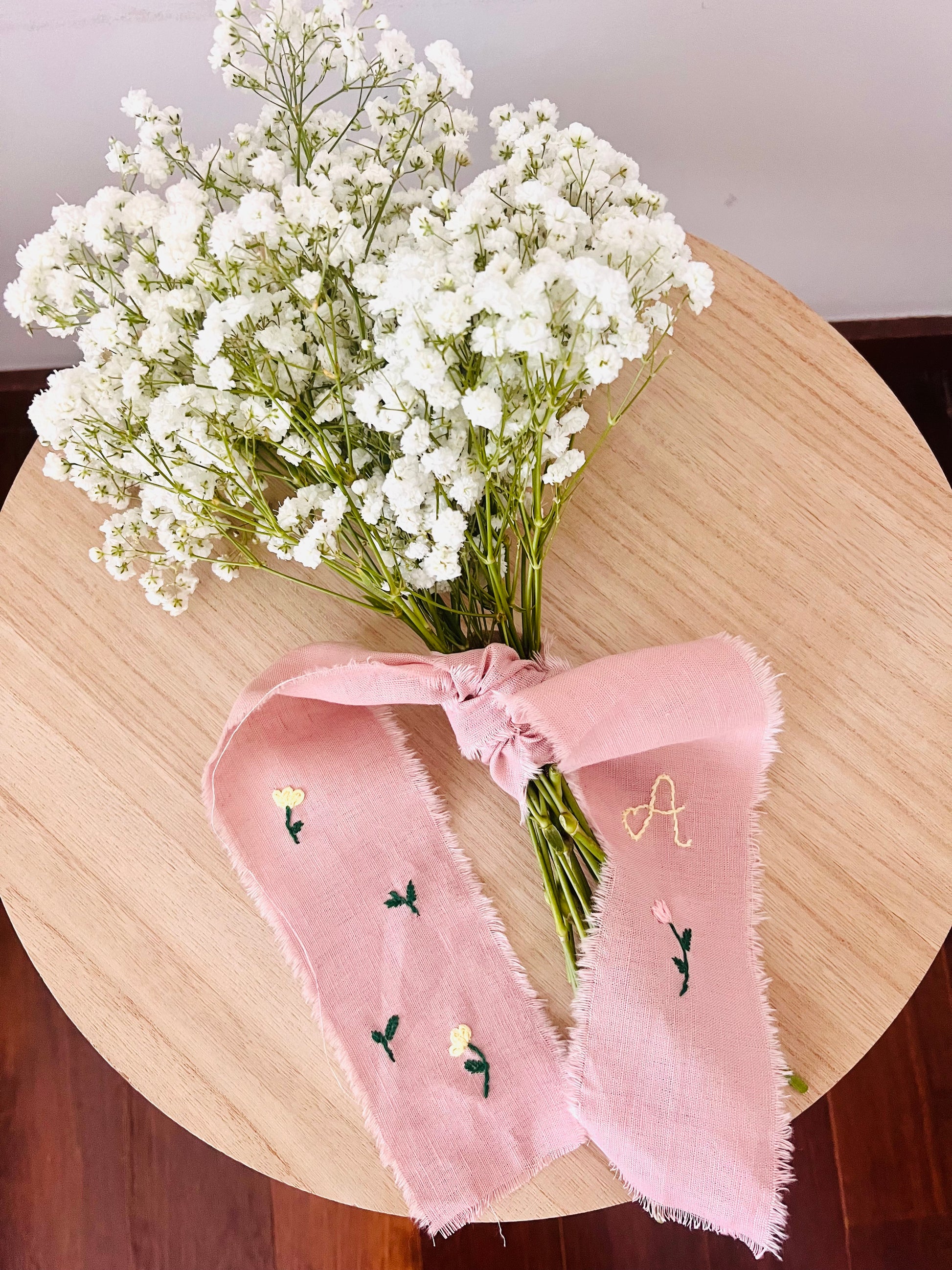 Faixa de bouquet com letra e folhas