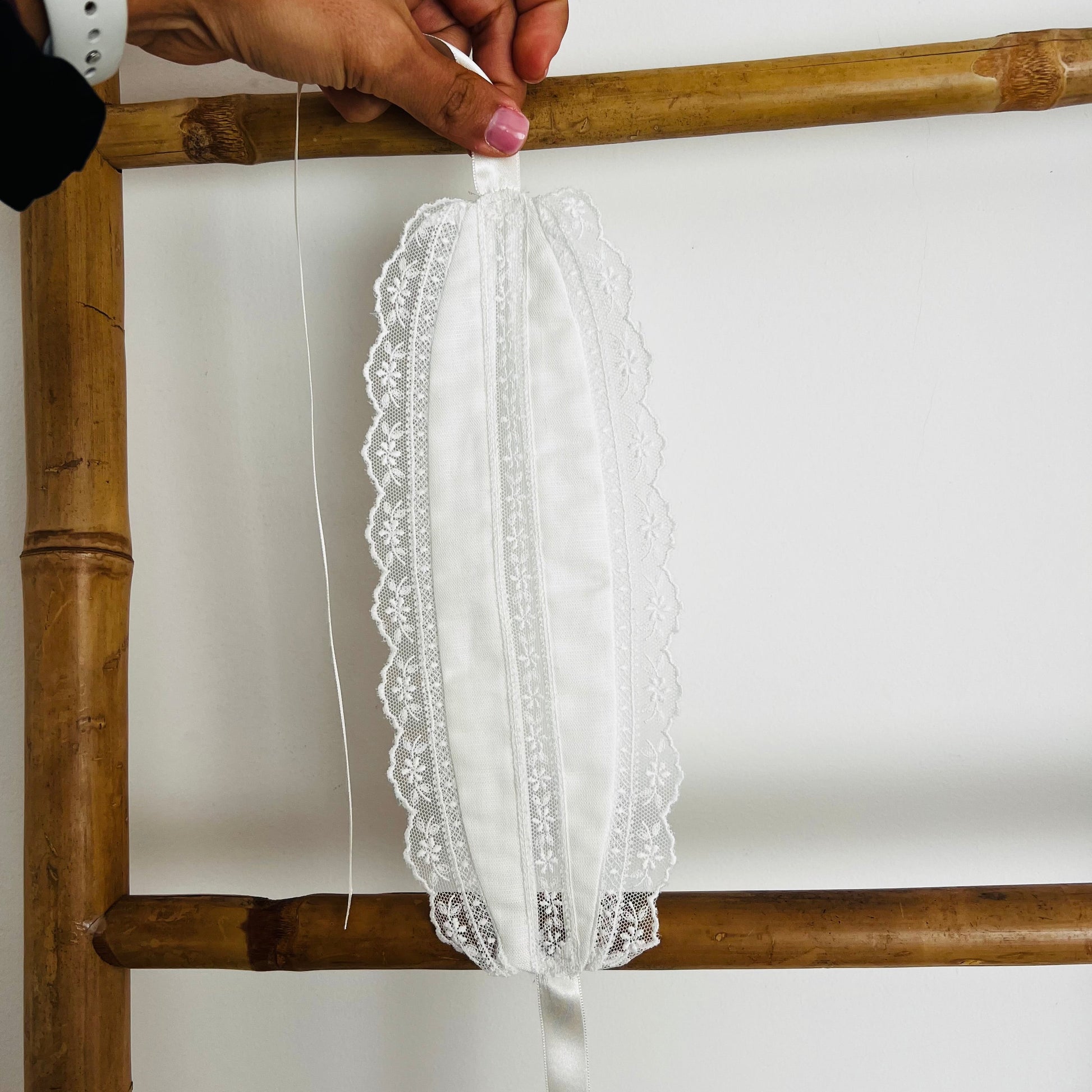 Fita de cabelo de batismo delicada e elegante, ideal para completar o look de batismo do bebé com um toque clássico e intemporal. Confeccionada em tecido suave e confortável, esta fita de cabelo apresenta entremeio rendado cuidadosamente aplicado, acrescentando charme, leveza e sofisticação ao conjunto.
