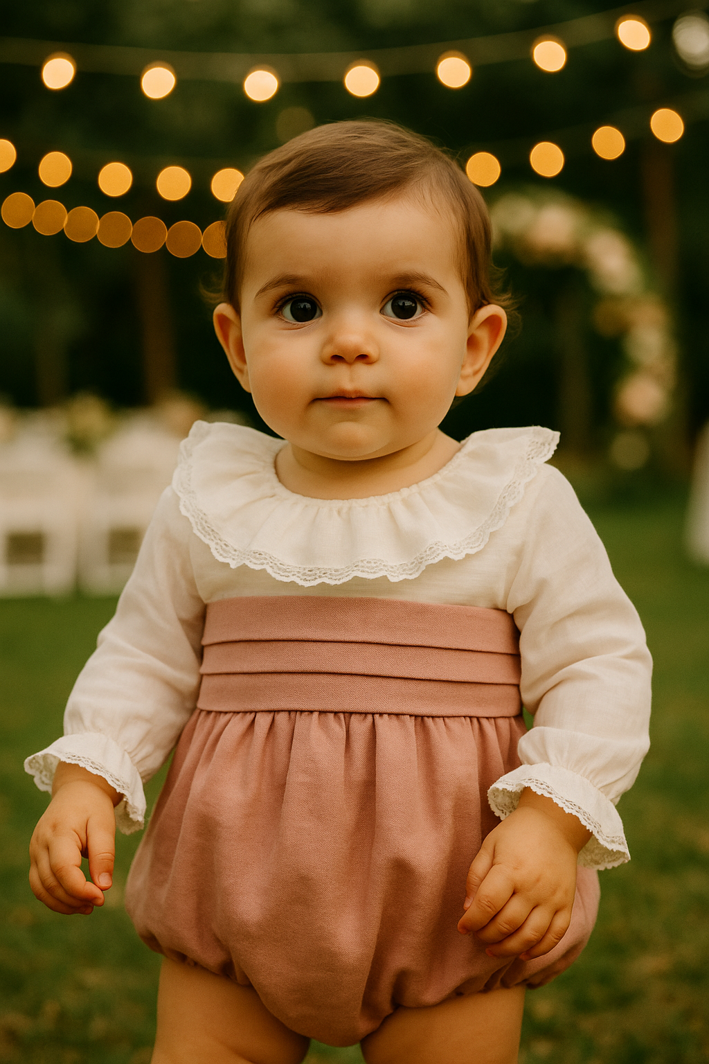 This all-linen formal gown is lined with 100% cotton fabric and features Valencian lace for a simple, elegant touch. You can choose the collar and the color of the hem.