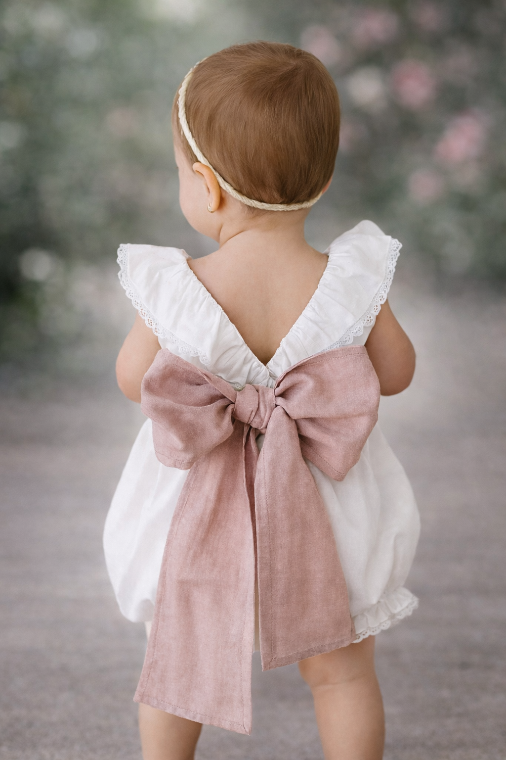 The Fofo Kika is a delicate and elegant piece, perfect for ceremonies, baptisms, or special occasions. Made from Oxford fabric , it stands out for its Valencian lace appliqué on the collar and hem , giving it a classic and charming touch.
