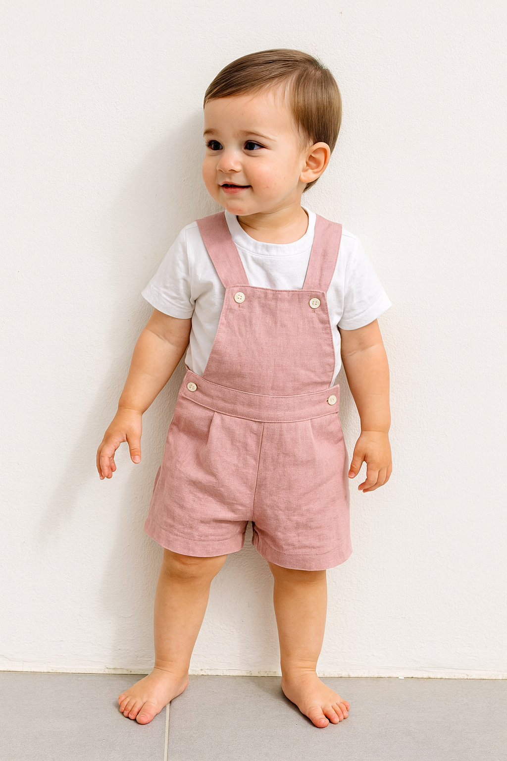 Este calção com peitinho é a escolha ideal para batizados e cerimónias, unindo elegância e conforto num só modelo. Confeccionado em linho delicado, proporciona um toque suave e leve na pele do bebé, garantindo bem-estar ao longo de todo o dia.